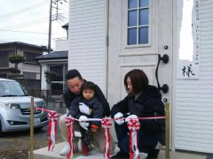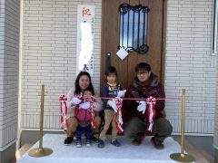 川越市にてT様邸お引渡しを致しました 家族みんなで仲良くテープカットです Yくん...