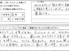 夢のマイホームが実現できてみんなの笑顔が増えました。本当にありがとうございました。