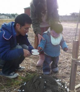 お子さんが二礼二拍手一礼をまねる姿、