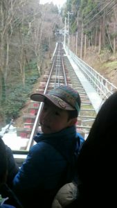 上記写真は、楽をしてケーブルカーで中間地点へ
