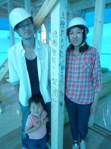 ご家族とても笑顔で、柱に書いてある『俺の城』という言葉が