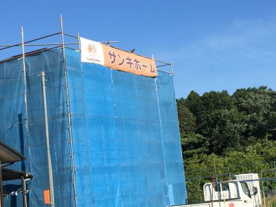 先日、上棟したU様邸、サンキホームの看板を設置しました!!