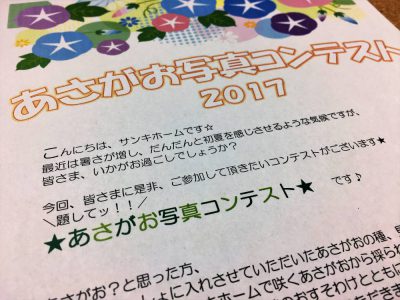 今回は、サンキホームのオーナー様向けになっているのですが、こんなこともさせていただいていますので、また素敵なあさがお写真、載せさせていただきます♪