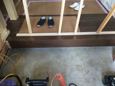 1Fは床が貼られ、玄関の施工でした!! 玄関はお家の顔でお客さんが来たりみんなが通る所なので、