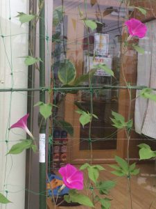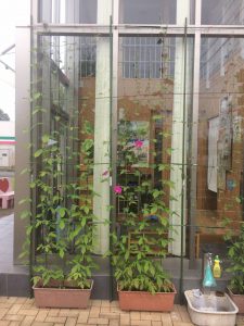 今朝、やっと会社のグリーンカーテンのあさがおが咲きましたぁ~グッド (上向き矢印)グッド (上向き矢印)8月なのに夏らしい天気にならず、あさがおも咲くことを遠慮していたのかなぁ~冷や汗 (顔)大きな窓いっぱいにあさがおのカーテンが出来るのがたのしみですうれしい顔みなさんも、あさがおカーテン見に来てみませんか?大きなキャンパスに描かれた絵画のように美しい作品ですよるんるん (音符)るんるん (音符)絵はがきのスケッチにもいいですね指でOK