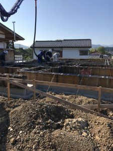 自宅の施工が進んでいます。今日は基礎工事でコンクリートの打設作業でした。