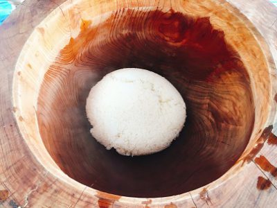 お餅をつく前ってこんな感じなんですdouble exclamation私、生まれて初めてうすときねを使ってお餅つきをしましたるんるん (音符)結構きねが重たくてちょっとフラフラしてしまいました(-_-;)