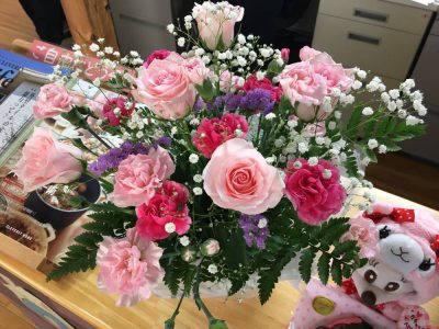 母の日、カーネーション入りのお花を