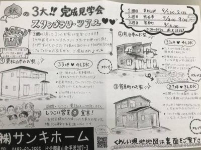 東松山市→江南→寄居町と3週に渡り見学会をさせていただきます