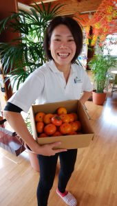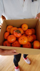 実家で取れたカキぴかぴか (新しい)…とスタッフながしまわーい (嬉しい顔)