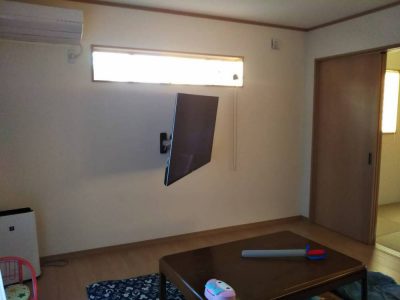 地鎮祭の時の、お守りもしっかりと飾って頂けておりました( *´艸`)ご主人様は設計との間取りのお打ち合わせの時から、壁掛けテレビを考えており、壁の下地や位置も含めお打ち合わせしておりました(*‘ω‘ *)テレビの向きが変えられるということで、リビングの隣の和室からもテレビが見える(*´▽`*)ゴロゴロしながら、テレビを見ている長島も『すごい✨すごすぎる
