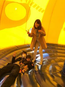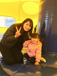 奥さまとEちゃん、ふわふわでのこの笑顔