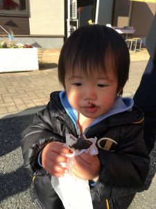 Rくんはあんこをいっぱいお口に付けてもぐもぐ・・・