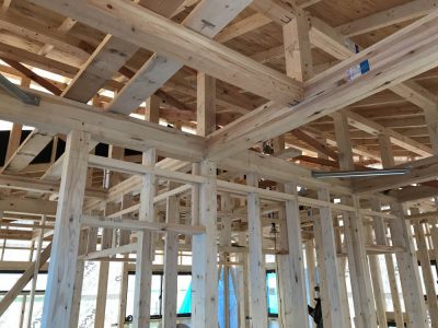 今日は進捗状況と筋交い(大事な構造部分)の確認と窓の位置や大きさ、釘の施工などの