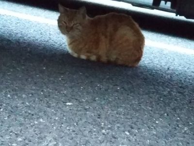ちょうど、相棒のプリウスで帰ってきた時に、何やら視線を感じ、しゃがんだところ・・・