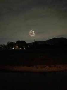 息子は花火の音が恐いらしく「かえりたい」と引っ付いておりました