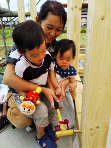 Yくんに金づちを渡し、ピン打ち記念✨『1人で持てるの~』と頑張ってピン打ちをしてくれました(*‘∀‘)