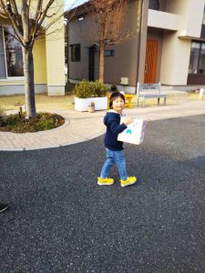 おかしつかみどりのBOXを持って『3時だからおやつ~🍩』とカワイイ笑顔で(≧▽≦)