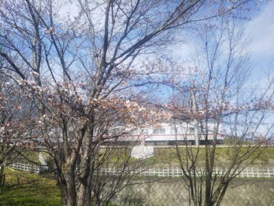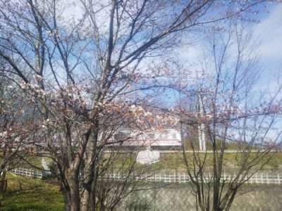 桜が咲いてる~🌸と思い、カメラを向けるとタイミングよく電車が✨