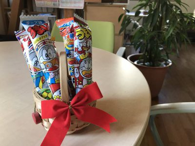 さて、午前中にY君がうまい棒をみんなに届けてくれました