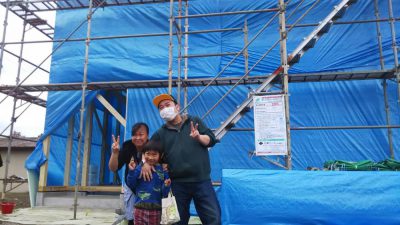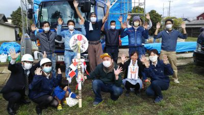 まずは、棟梁さんや、大工さんと一緒にバンザーイ