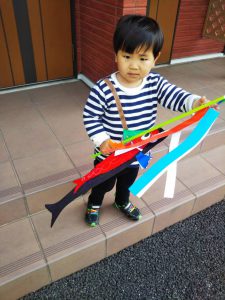 そしてお兄ちゃんの作ってきたこいのぼりを元気に振り回して(笑)いたのが、弟のAくん