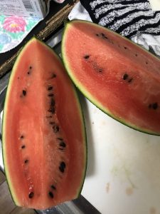 立派なスイカでずっしり重く自家製とは思えない感じでした。