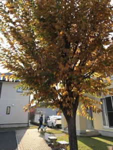 サンキホームのシンボルツリーもだいぶ色づいてきましたもみじ