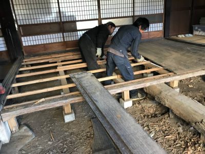 土台は丸太、梁などの架構を見ると、昔の大工さんはすごいなーと改めて感じます。