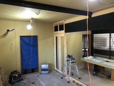 築100年越えなので、まっすぐな柱や壁ではありません。そこに合わせていくのは、写真には写らないけど、大工さんの匠の技…だったりします。
