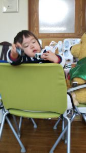 Kくんのいる場所はイスを組み合わせて作った秘密基地ですよ(*´▽`*)