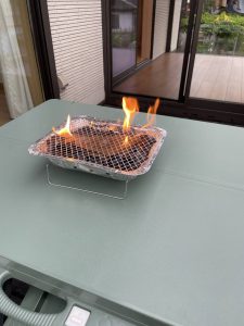 去年はホットプレートで行いましたが、今年は100均でゲットしたBBQセットを活用してみました。
