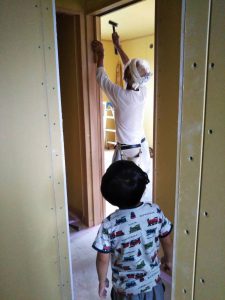 大工さんの作業をジーとみているAくんdouble exclamationdouble exclamation『ぼくのおうちつくってくれてるの?』『いつできるの~?』『それおもいの~?』と質問攻めでした(;´∀`)でも、そんな一コマ一コマがお家つくりの大切なエピソードになっていきますよね?