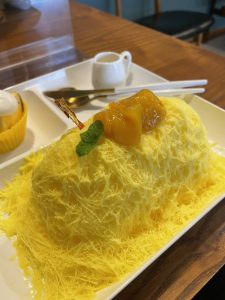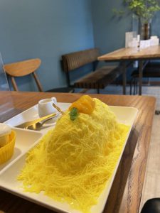 糸ピンスなるもので韓国?とかのかき氷だそうです。情報が曖昧ですみません。