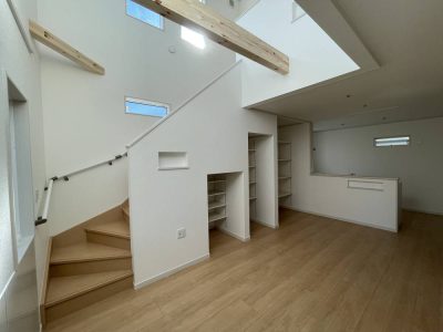 今度引渡し予定のI様邸です。吹き抜けからの光が気持ち良いです。