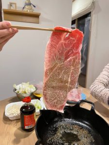 年に一回。私の誕生日に父より頂いた高級な肉で、すき焼きをします。