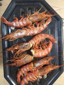 ストーブの上で、ジュージューと🦐とってもいい香りが