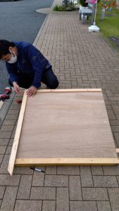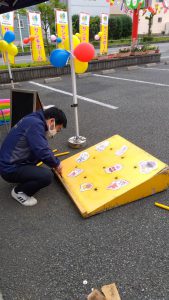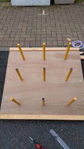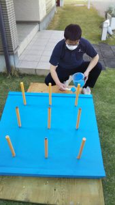 ちびっ子と遊んでくれた輪投げのリニューアルで分解中