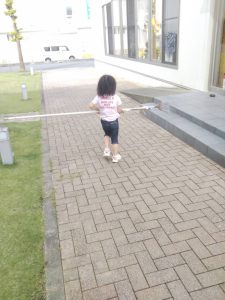 今日ちびっ子が、くもの巣取りを手伝ってくれました