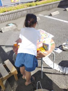 サンキホームでは、広い駐車場でシャボン玉をしたり輪投げをしたりと楽しめます(*^^)v元気な子供たちあつまれ~