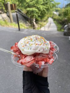 神社入口のお食事処はテラスがあり、秩父の山々を見ながらお食事出来ます。ほんと絶景です。あと削りイチゴ‥おススメです。  秩父に行った際は、ちょっと脚を伸ばしてみてはいかがでしょう。