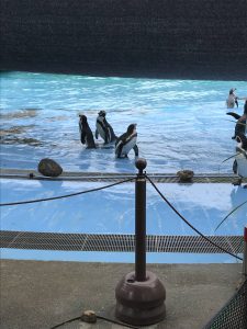 ペンギンプールを散歩したり泳いだりとても楽しそうです