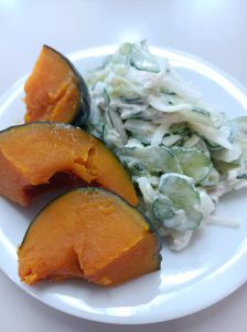 キュウリと玉ねぎのサラダもさっぱりしていて食べやすい