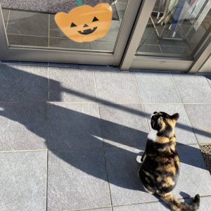 かぼちゃの飾りに『ニャーニャーニャーーー』(Trick or Treat)と話しておりました🎃