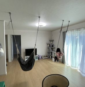 ハンモックチェアーも付いてます。ゆらゆらまったりしながらのTV視聴とか…最高。