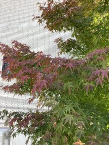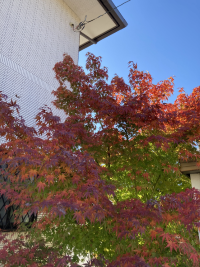 今日も晴天で色づいてきた葉っぱが青い空によくはえますね
