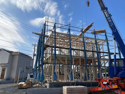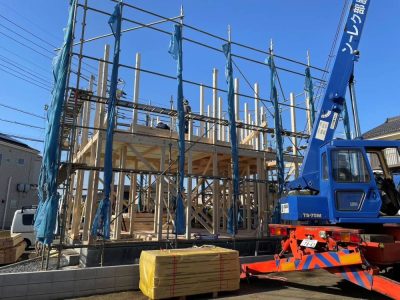 キレイに青く澄み切った空の下、川越市にてT様邸上棟おめでとうございます🏠