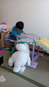 キッズルームで遊んでいるお子様の何気ない行動が面白い