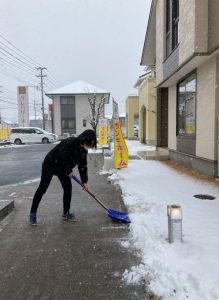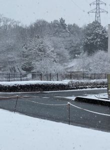 夕方になるにつれて道路にもうっすら雪が積もってきました