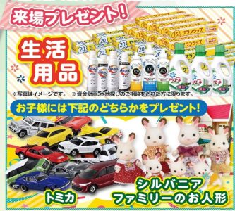 お子様にはトミカかシルバニアファミリーのお人形プレゼントひよこ